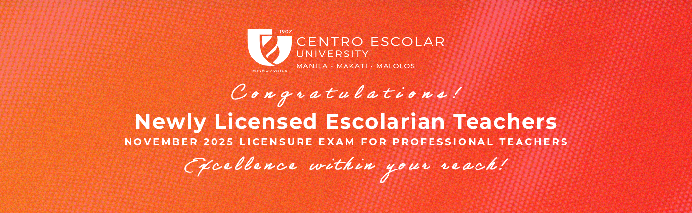 For more information about CEU, please visit the official website of the University at www.ceu.edu.ph. You may also follow CEU on Facebook at @theCEUofficial, @CEUMalolosofficial, @CEUMakati05; on Twitter at @CEUmanila, @CEU_Makati05, and @CEUMalolos; on Instagram at @ceuofficial; on Youtube @CEUofficial; on Tiktok at ceuofficial_; and on Spotify at Escolarian Talks.
