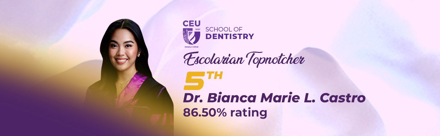 Topping the list are Vyanne Ashley Natzja Frias Gonzales, Rank 7 from CEU Manila; John Lloyd Dones Herras, Rank 8, from CEU Makati; and George Daniel Tolentino Ablaza, Rank 10 from CEU Malolos.